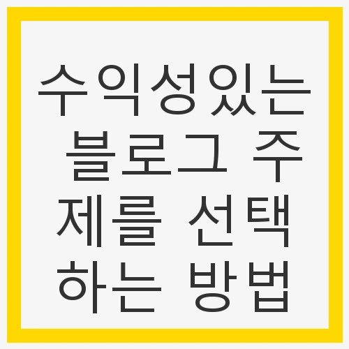 블로그 운영은 많은 사람들에게 매력적인 선택이 되고 있습니다. 하지만 수익성 있는 블로그를 운영하기 위해서는 주제 선택이 그 무엇보다 중요합니다. 주제를 어떻게 선택하느냐에 따라 블로그의 방향성이 달라지고, 꾸준한 글쓰기의 가능성도 영향을 받습니다. 많은 초보 블로거들이 주제 선정에 어려움을 겪는 것이 사실입니다. 그래서 이번 글에서는 수익성 있는 블로그 주제를 선택하는 방법에 대해 알아보겠습니다.